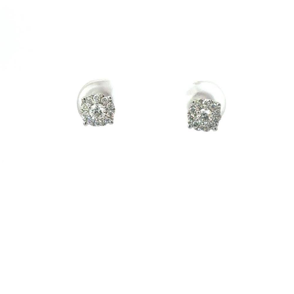 9ct white gold stud earrings invisible set with a cluster of round brilliant cut diamonds to give the illusion of one diamond. 0.29ct total diamond weight.