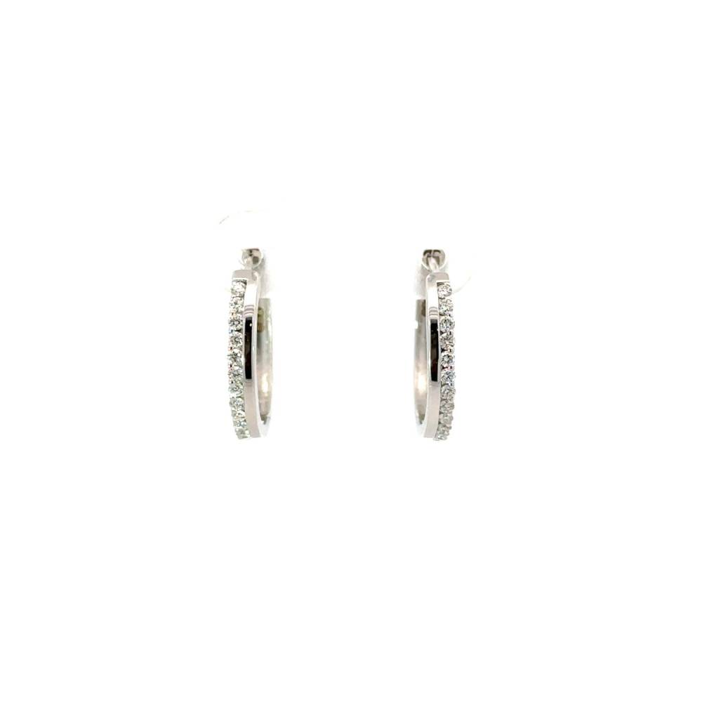 9ct white gold hoop earrings with a row of offset diamonds. Size 18mm, width 2mm. 0.32ct total diamond weight.