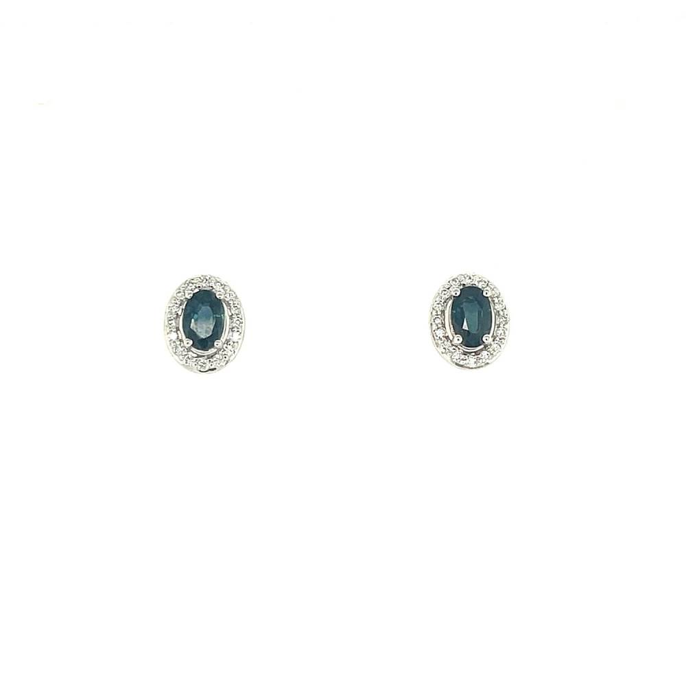 9ct white gold oval blue sapphire and round brilliant cut diamond oval cluster stud earrings.