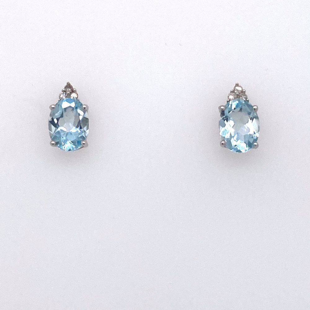 9ct White Gold Pear Shaped Aquamarine & Diamond Earrings
