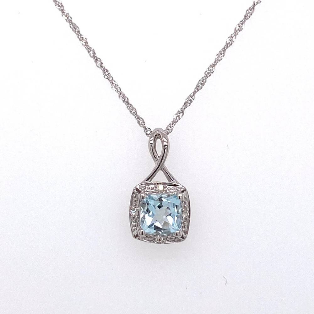 9ct White Gold Square Aquamarine & Diamond Pendant