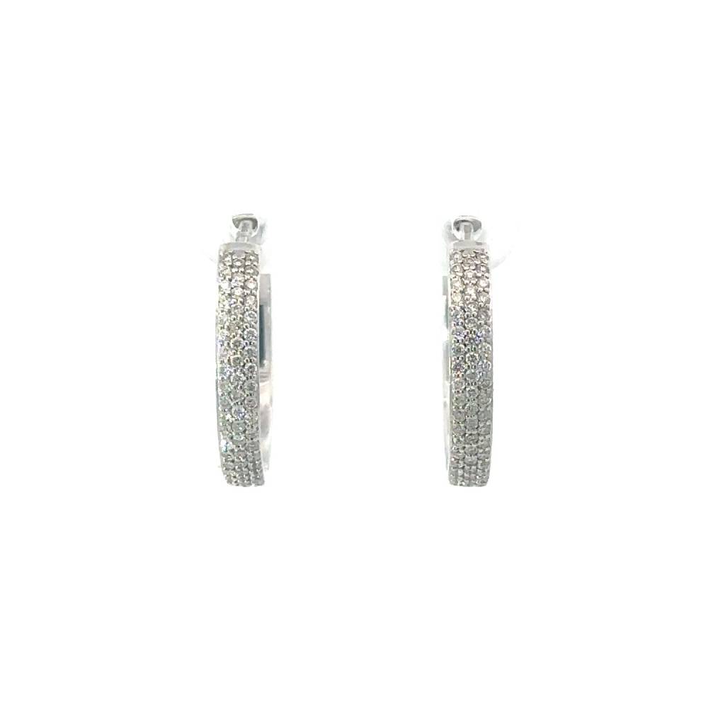 Beautiful medium sized hoop earrings in 9ct white gold set with three rows of pave set round brilliant cut diamonds. Hinged earrings. 0.50ct total diamond weight.