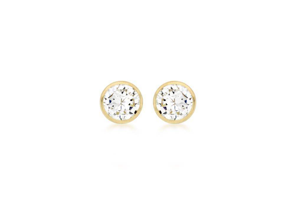 9ct yellow gold 5mm rub over set cubic zirconia stud earrings.