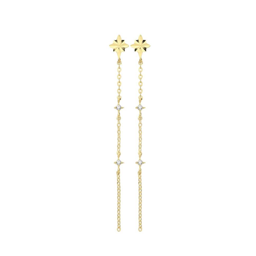9ct yellow gold chain drop earrings with a diamond cut star and set with cubic zirconia.