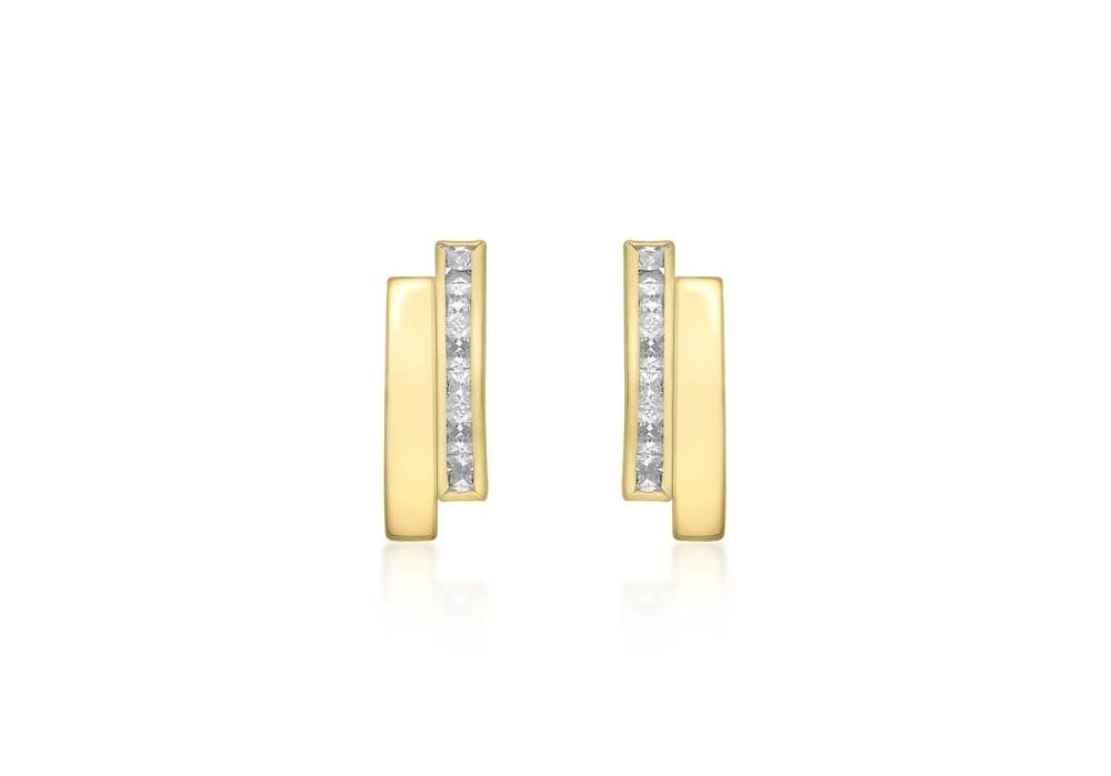 9ct yellow gold double bar stud earrings one side polished and the other set with cubic zirconia. Height 10.5mm, Width 3.5mm.