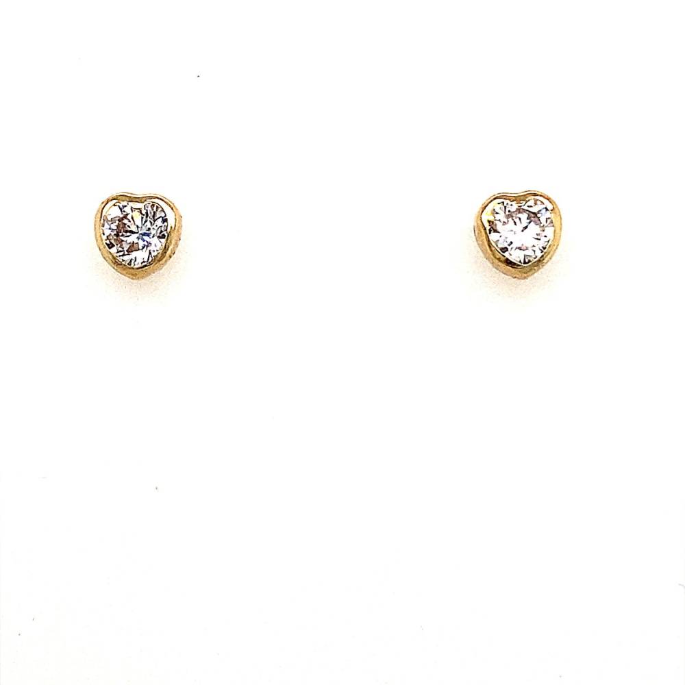 9ct yellow gold heart shaped cubic zirconia single stone rub over set earrings.