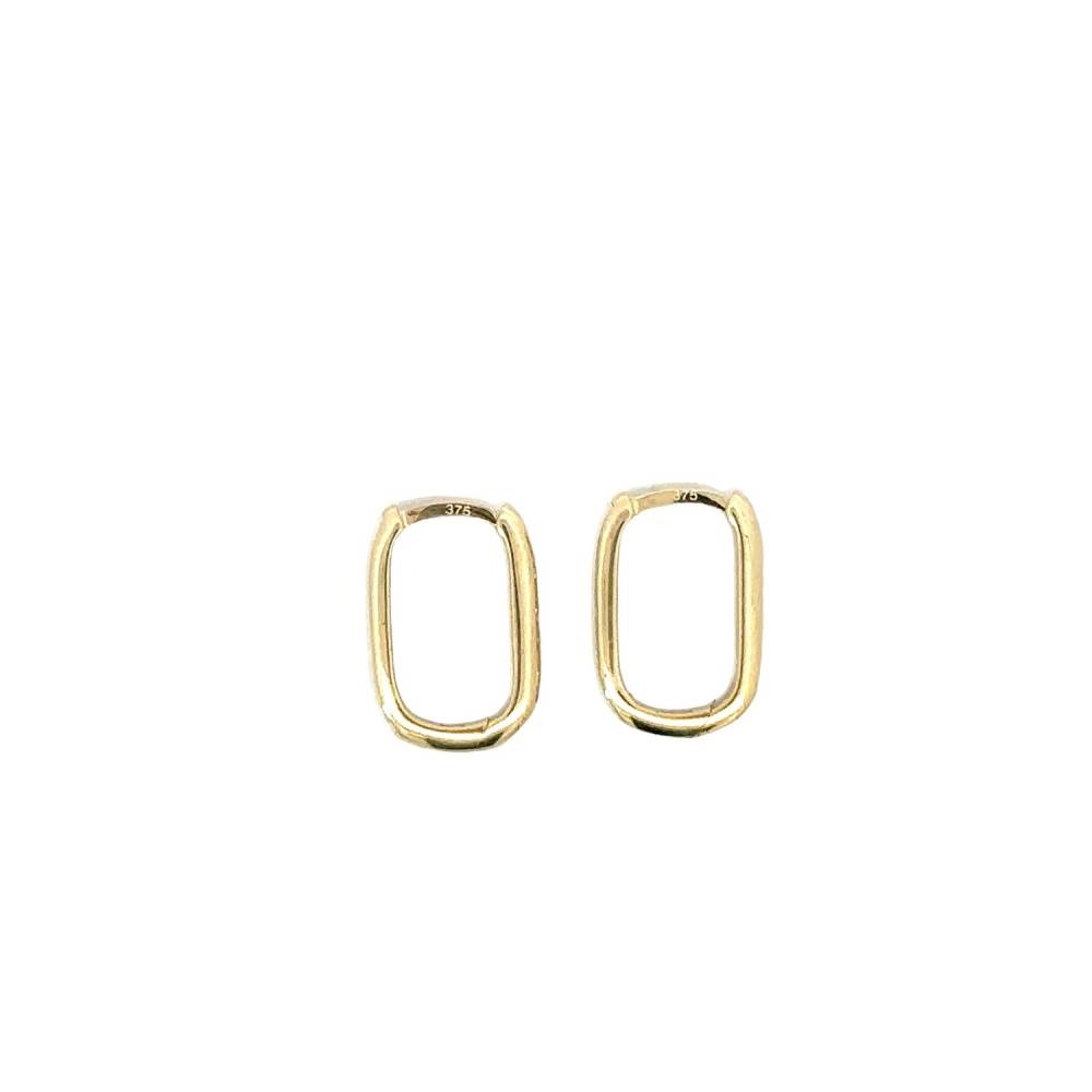 9ct yellow gold rectangular shaped huggie earrings set with cubic zirconia. Dimensions 12mm x 8mm.