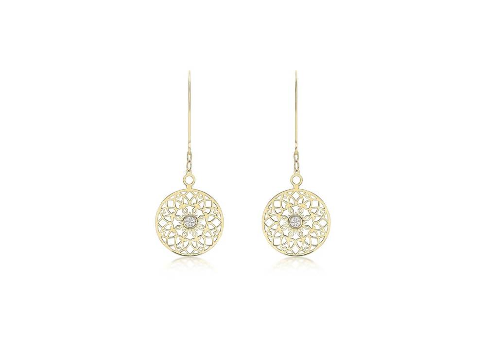 9ct Yellow Gold Cut Out Round Drop Earrings