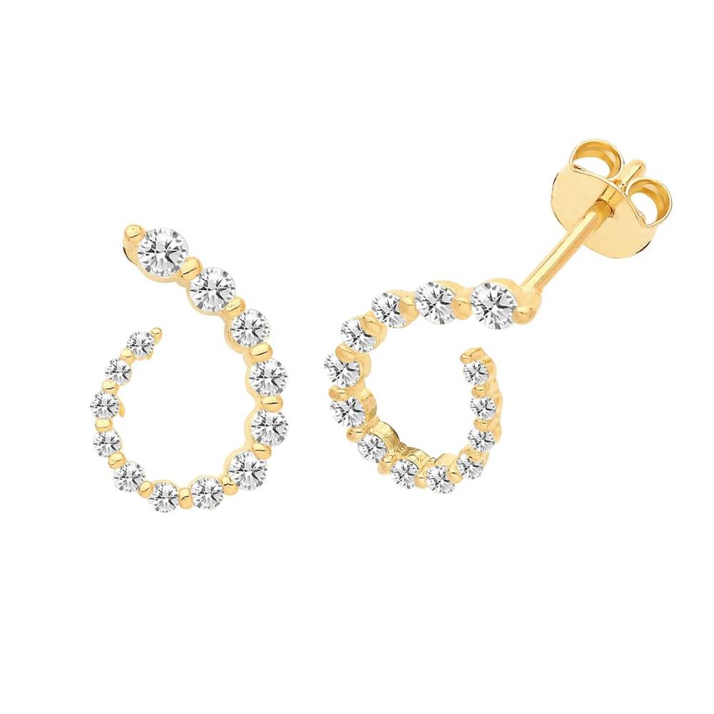 9ct yellow gold curl stud earrings set with sparkling cubic zirconia.