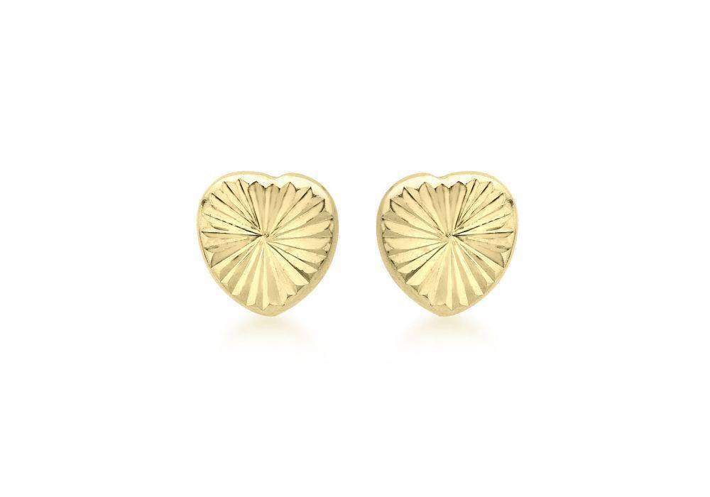 9ct yellow gold diamond cut heart shaped stud earrings.