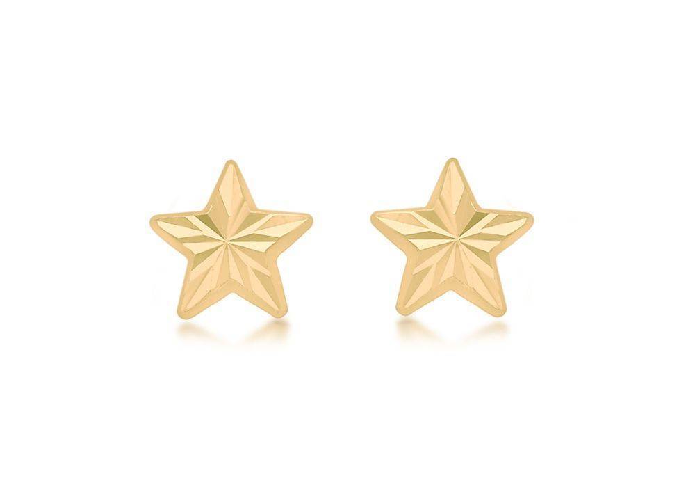 9ct yellow gold diamond cut star stud earrings. Pillar and scroll fittings.