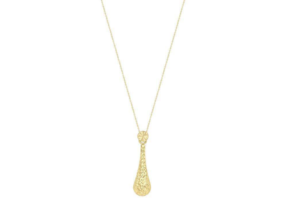 9ct yellow gold diamond cut teardrop necklace. Chain length 44.5cm.