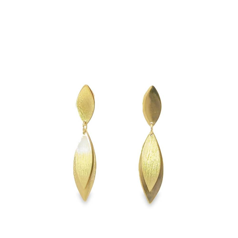 9ct yellow gold double leaf drop earrings. Length 30mm