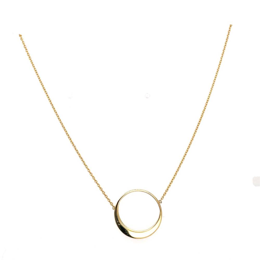 9ct yellow gold graduated open circle necklace fixed on a 9ct yellow gold adjustable length chain. This necklace can be worn at either 16″ or 17″.