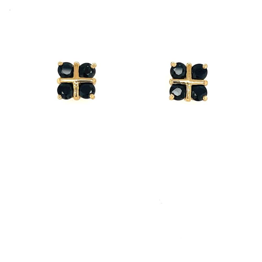 9ct yellow gold earrings set with four round dark blue sapphires.