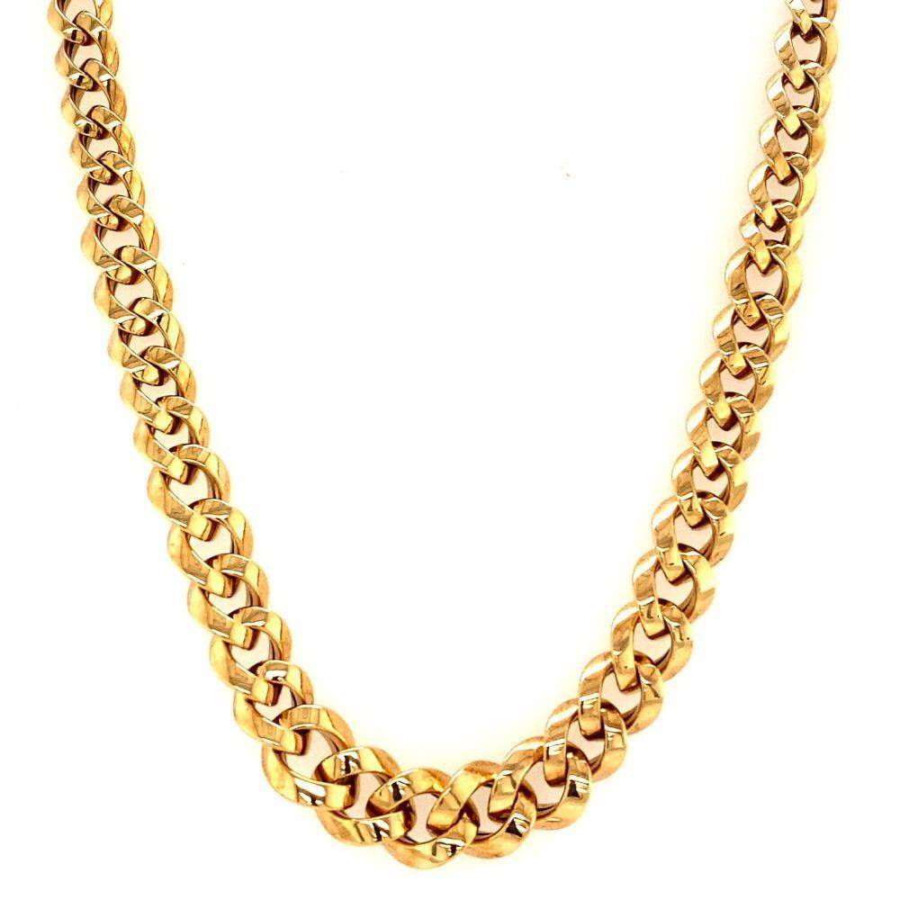 9ct yellow gold graduated curb link necklace. Length 18″”.