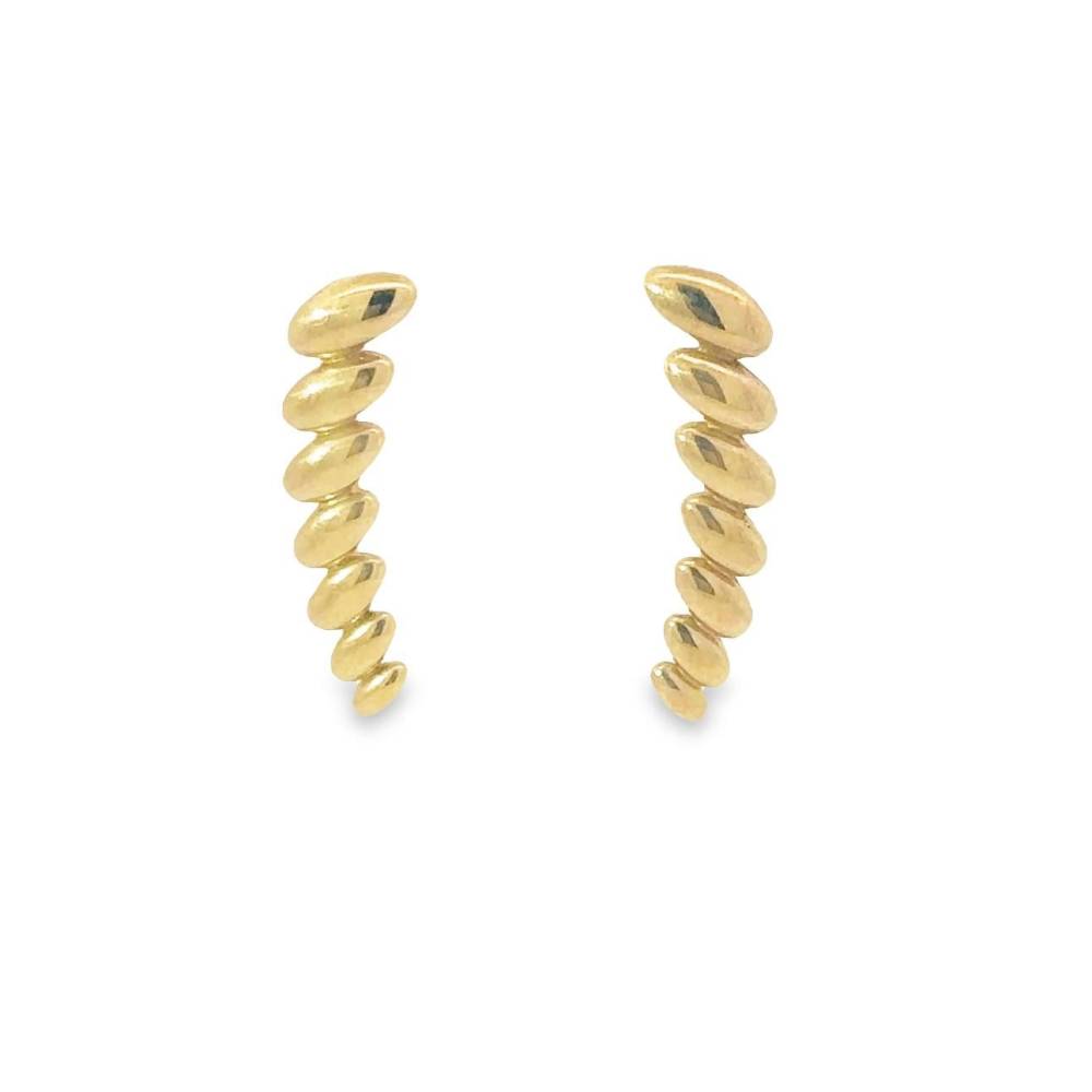 9ct yellow gold graduated marquise shaped cuff style earrings. These earrings are designed to be worn up the ear lobe and have a hook style fitting.