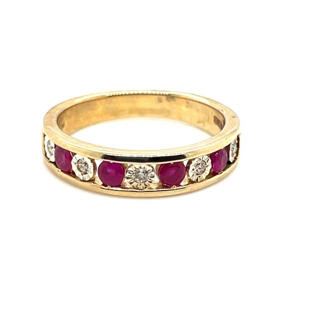 8. 9ct Yellow Gold Illusion Set Ruby & Diamond Half Eternity Ring