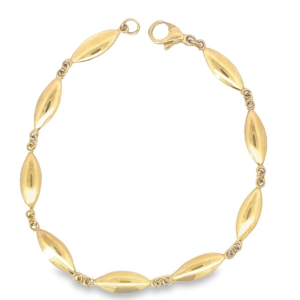 9ct yellow gold highly polished marquise link bracelet.