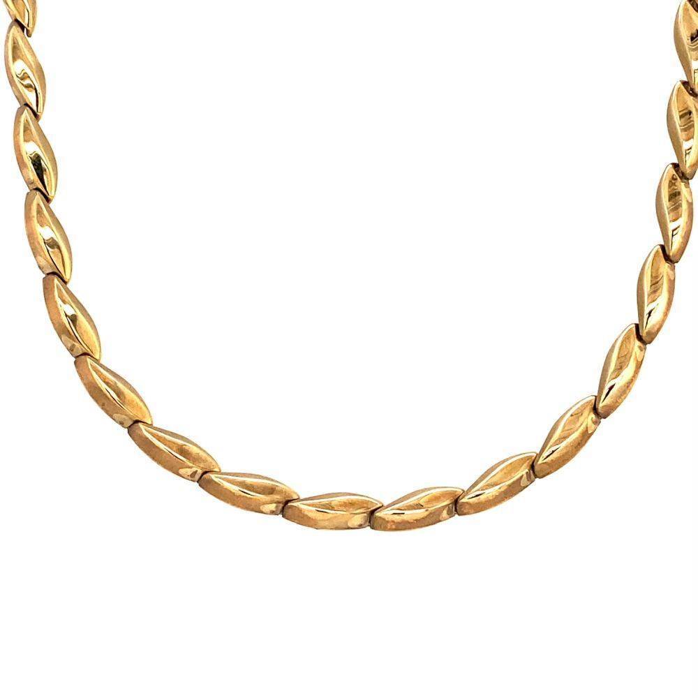 9ct yellow gold fancy marquise link necklace. Matching bracelet available. Length 17″”.