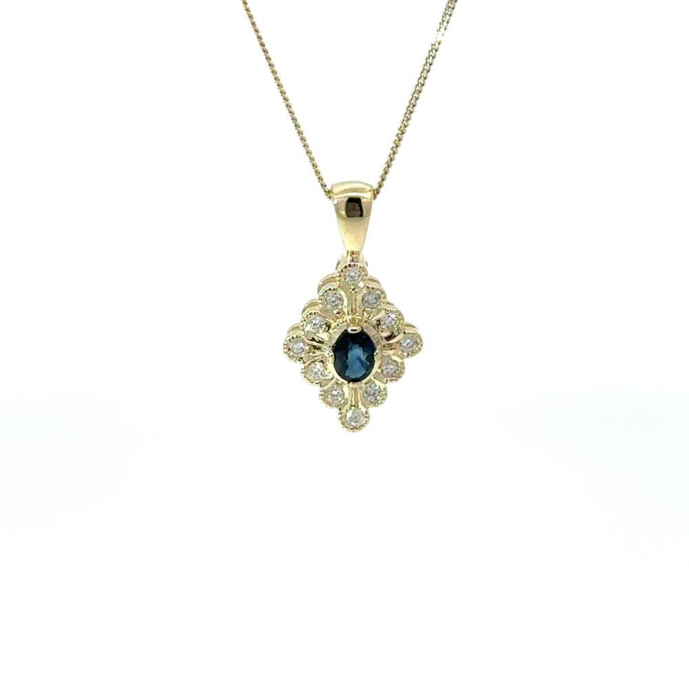 9ct Yellow Gold Marquise Shape Sapphire & Diamond Pendant