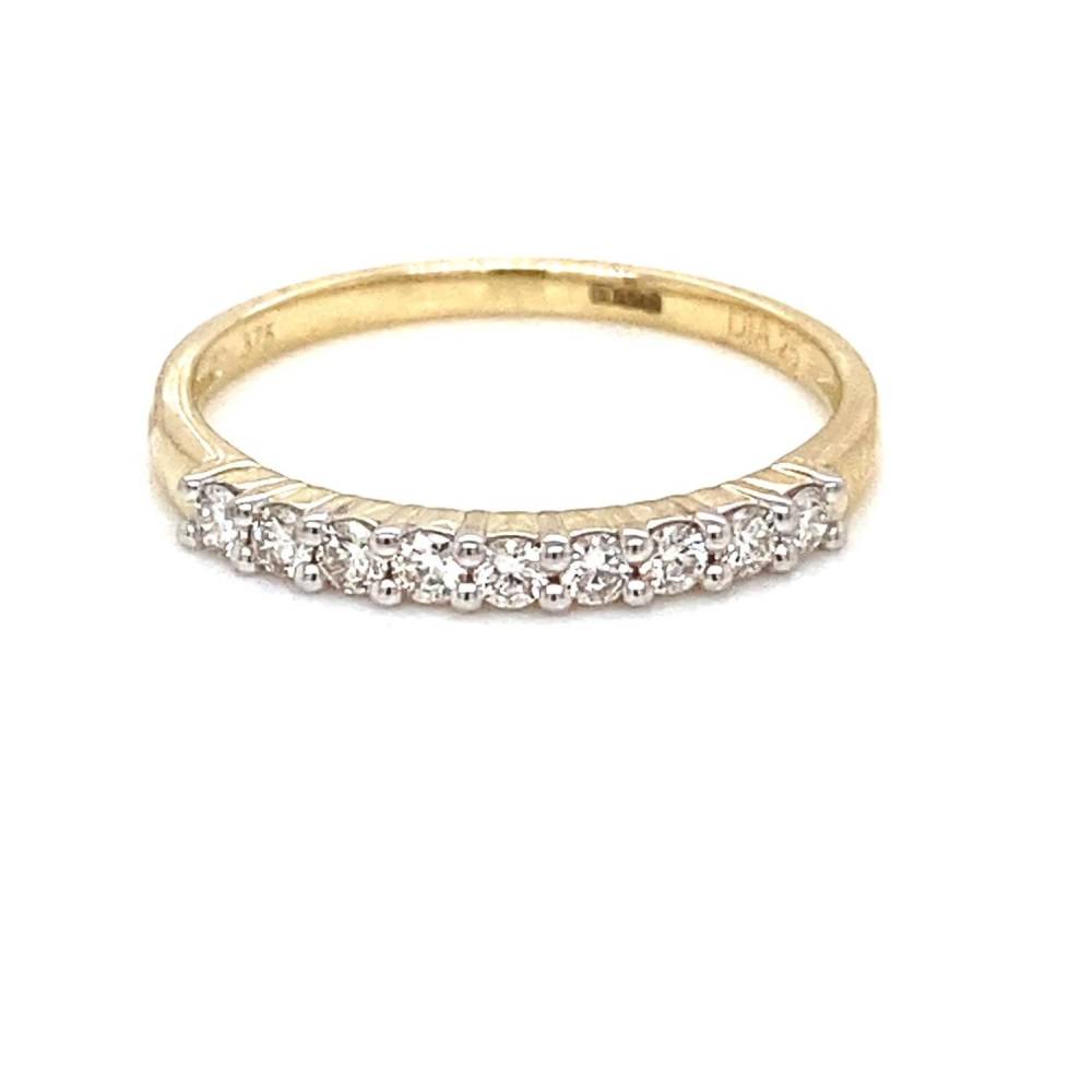 Nine round brilliant cut diamonds each claw set in a 9ct yellow gold ring mount. 0.25ct total diamond weight.