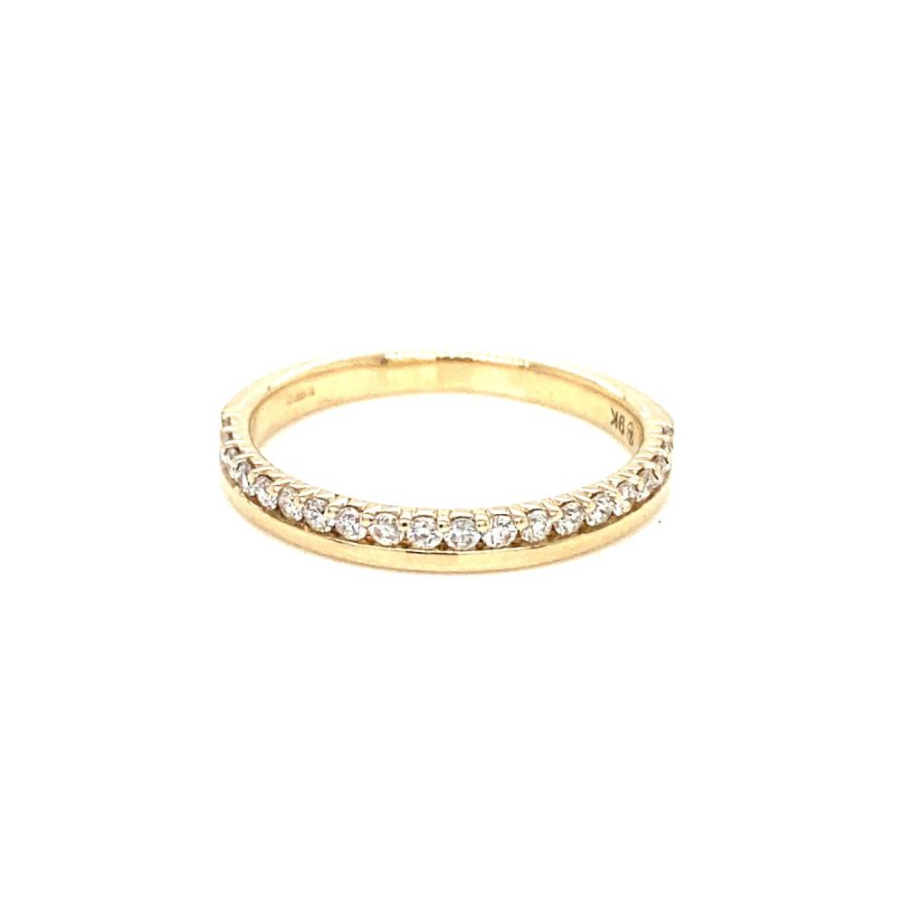 9ct yellow gold offset round brilliant cut diamond half eternity style wedding ring. 0.25ct total diamond weight.