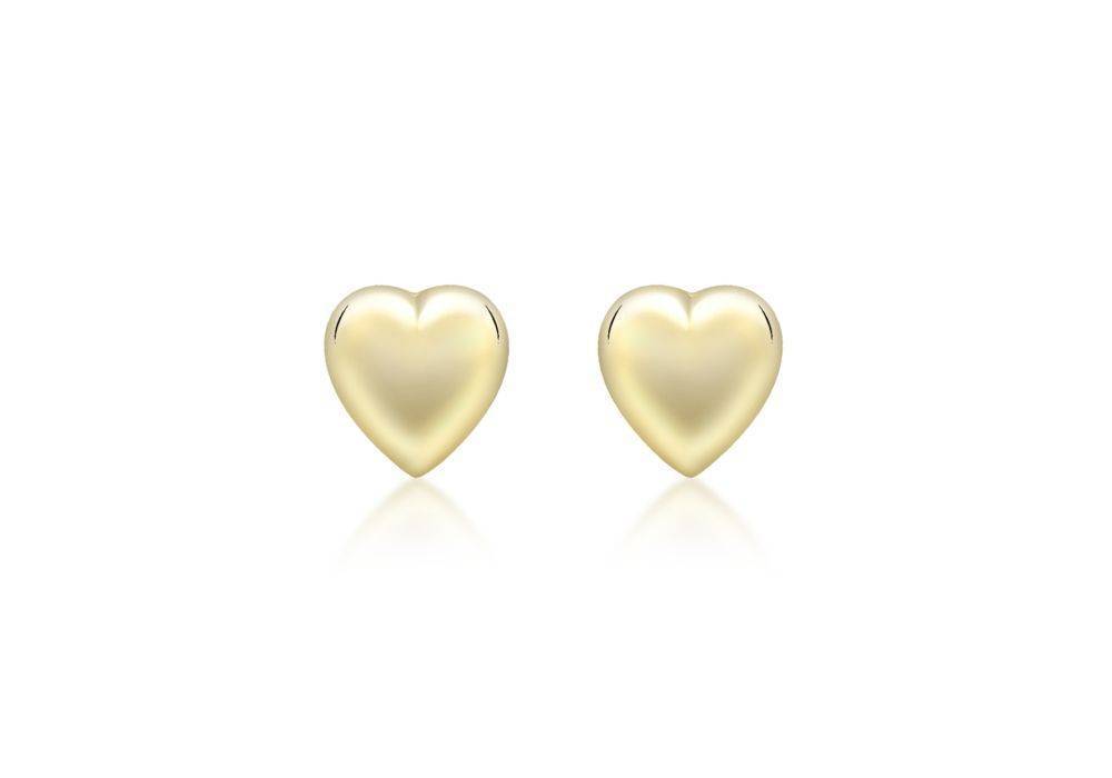9ct yellow gold puff heart stud earrings. Size 6.9 x 7.2mm.