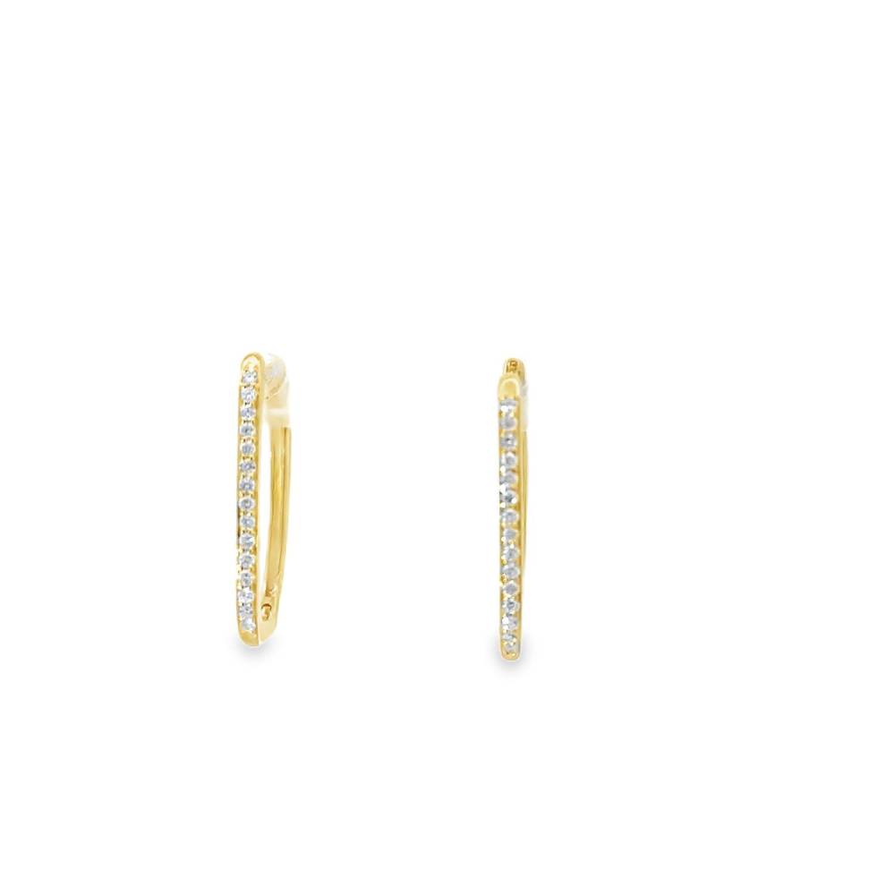 9ct yellow gold rectangular hinged hoop earrings each set with a row of grain set round brilliant cut diamonds. 0.15ct total diamond weight. Size 20mm x 14mm.