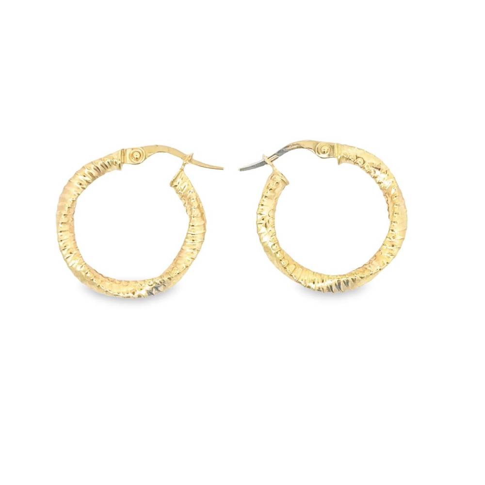9ct yellow gold ribbed twist hinged hoop earrings. Size 20mm