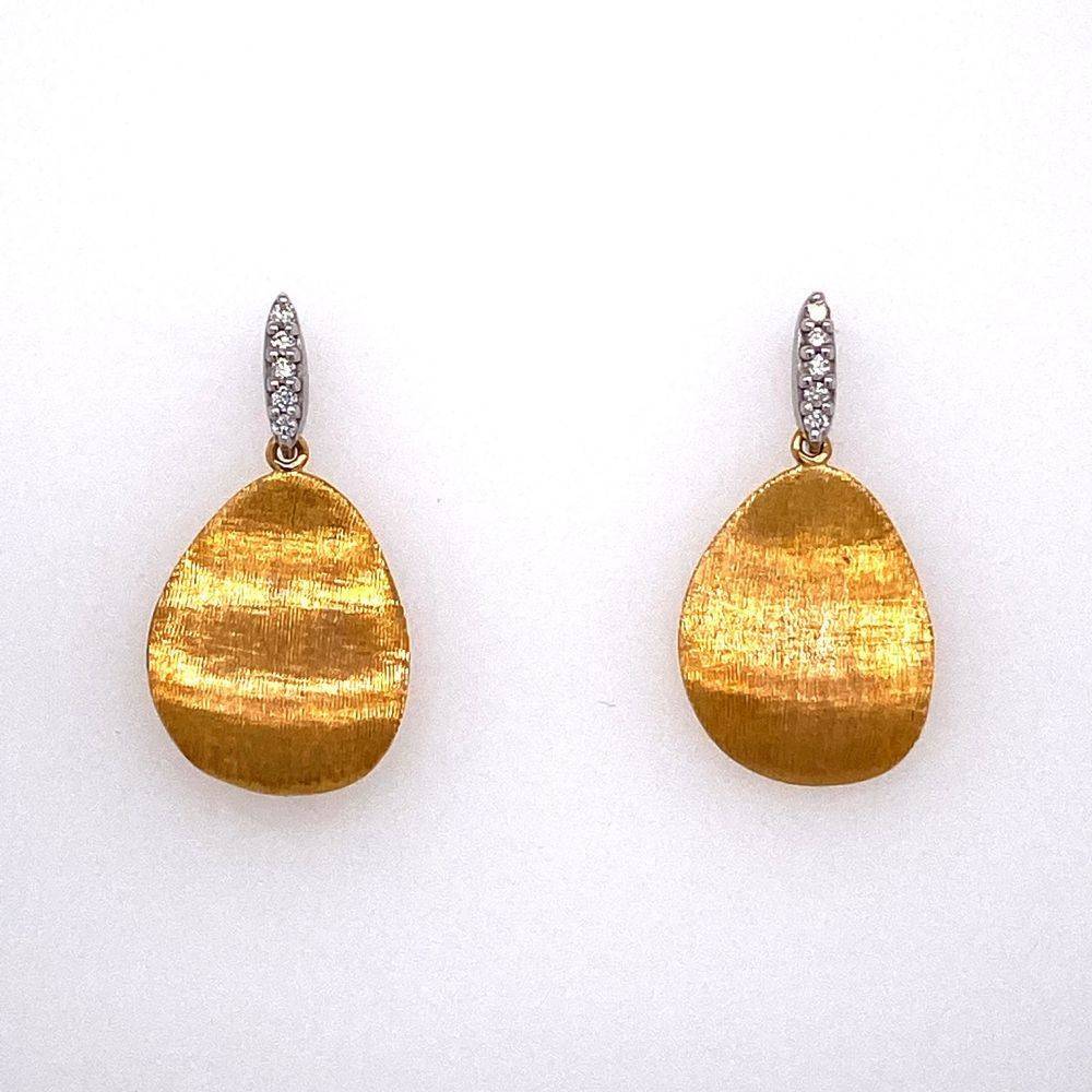 9ct yellow and white gold earrings. An oval satin finish yellow gold disc with a diamond set bar above. 0.09ct total diamond weight.