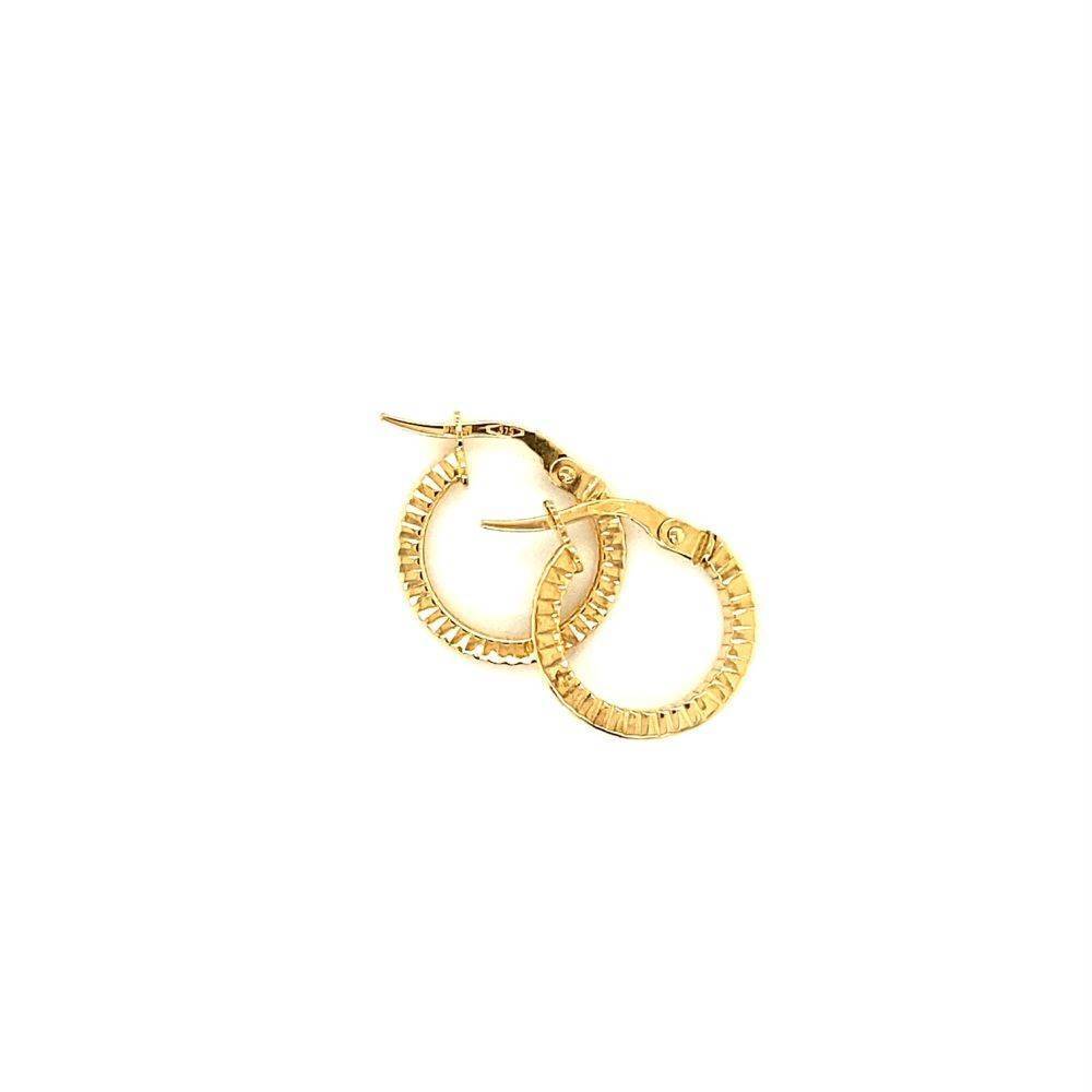9ct yellow gold small hoops with a vertical line pattern. Size 10 x10mm.