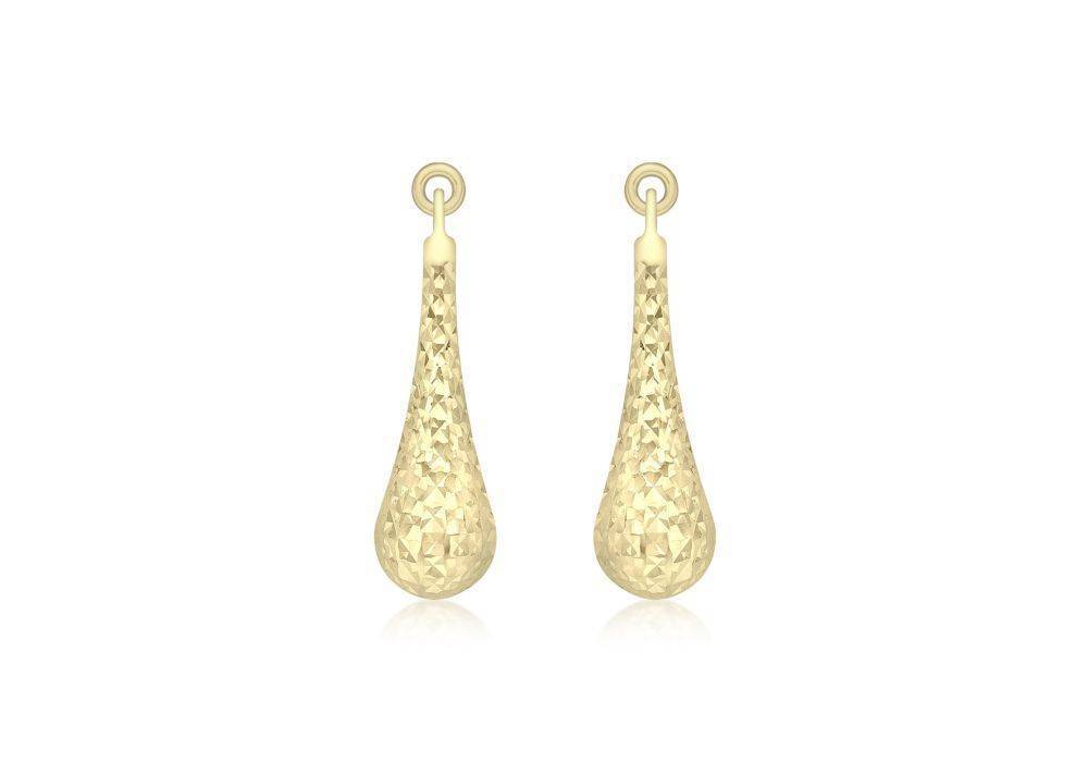 9ct yellow gold diamond cut teardrop shape drop earrings with a pillar and scroll fitting. Height 23.5mm.