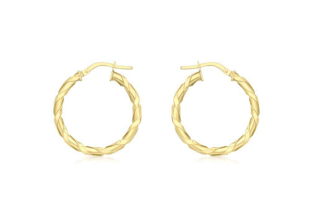 9ct Yellow Gold Twist Hoop Earrings 25mm