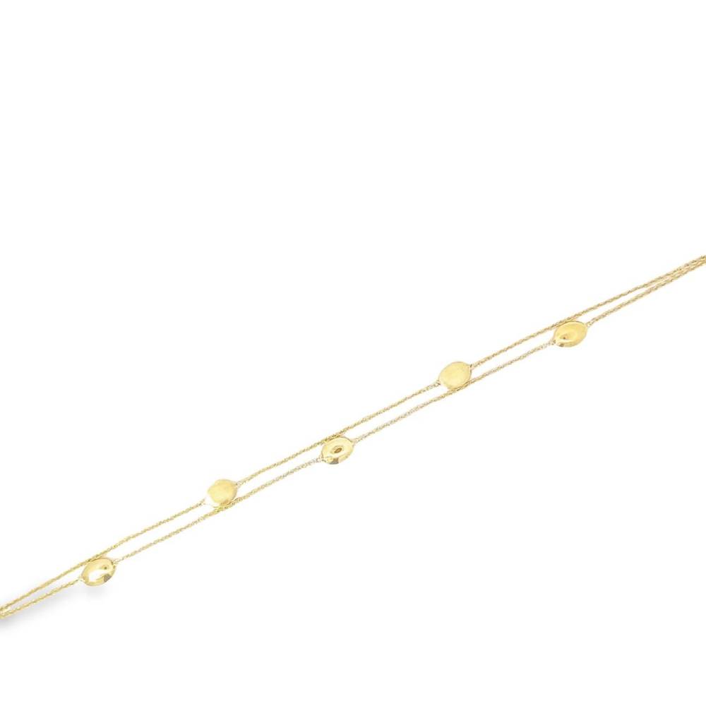 9ct yellow gold polished and satin finished two row nugget station bracelet.