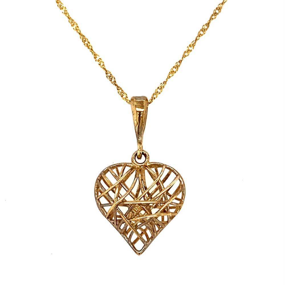 9ct yellow gold wire heart pendant on a 9ct yellow gold twist curb chain. Length 16″”.