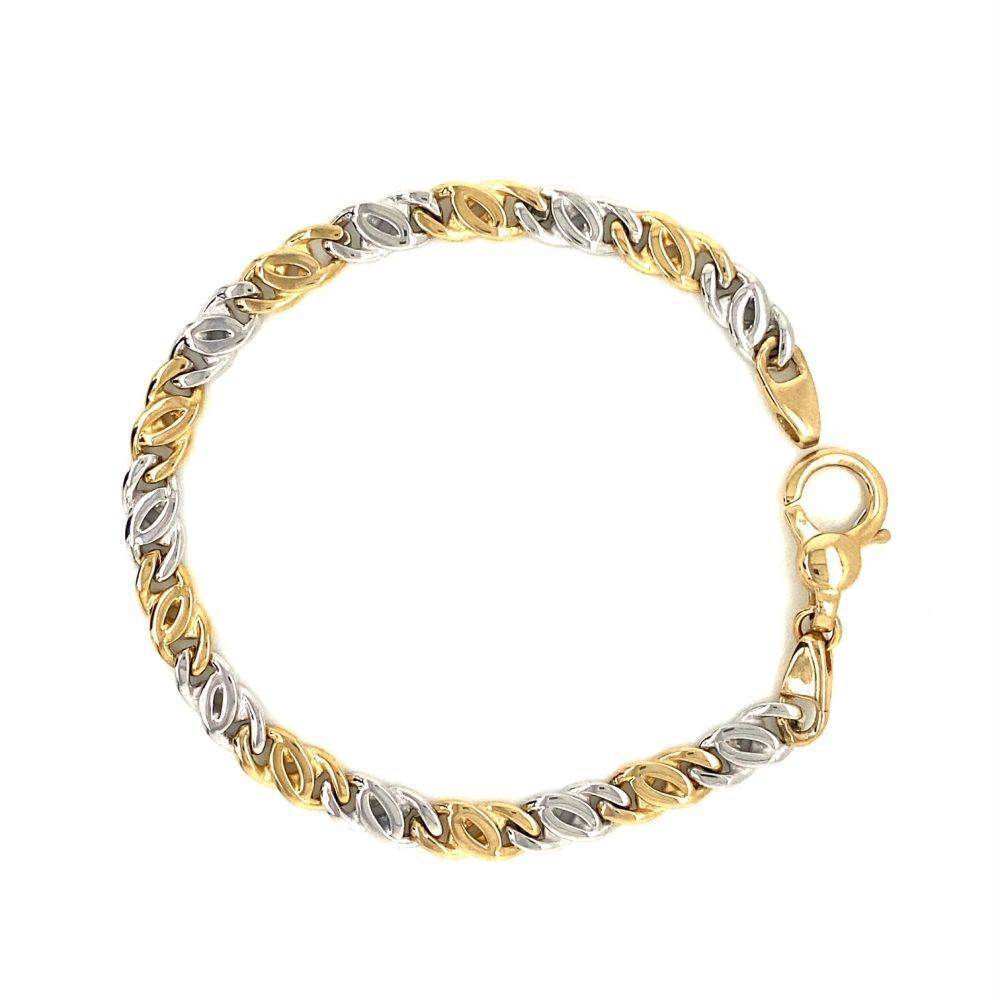 9ct yellow and white gold alternate double curb link bracelet with a large feature catch.