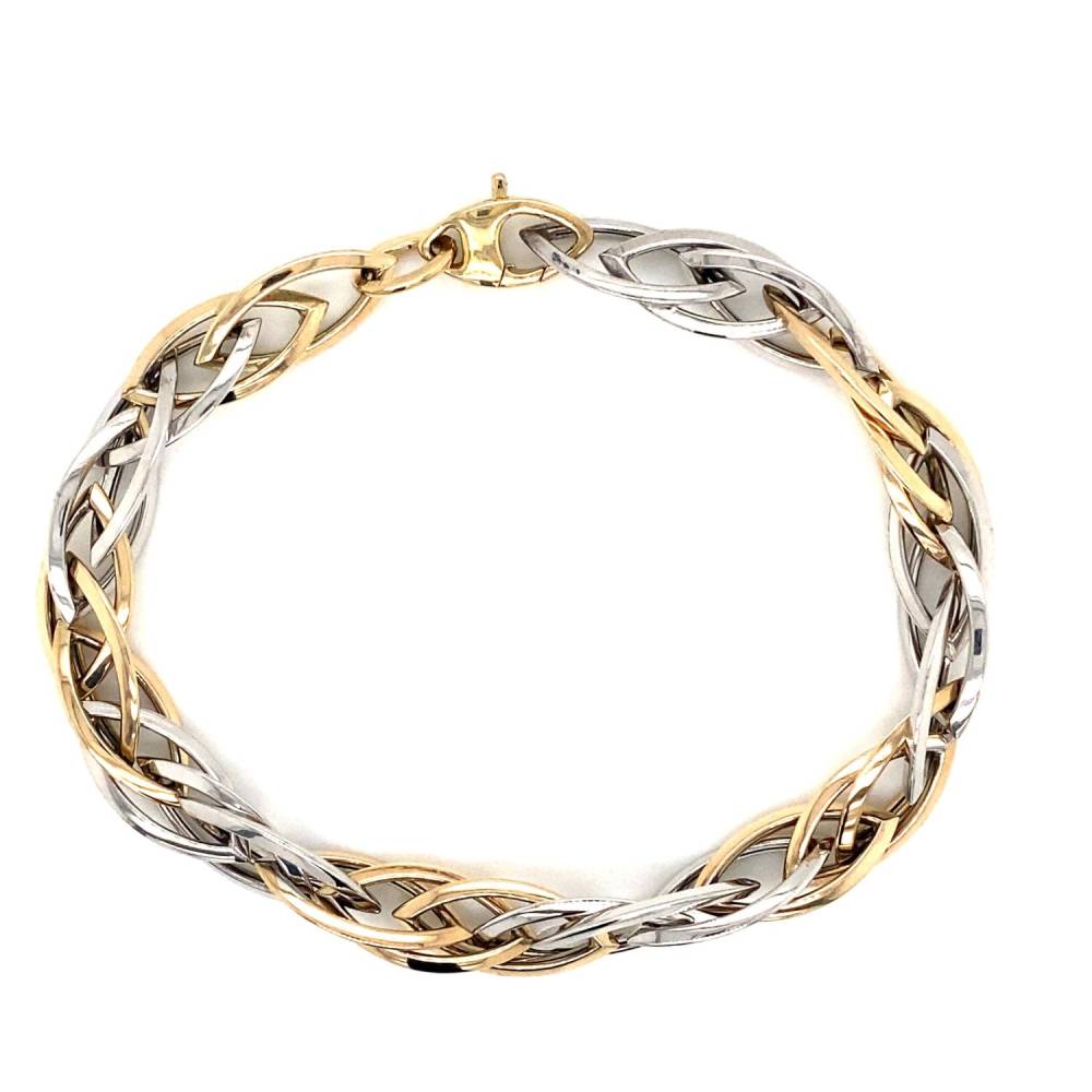 9ct yellow and white gold two colour fancy open marquise multi link bracelet.