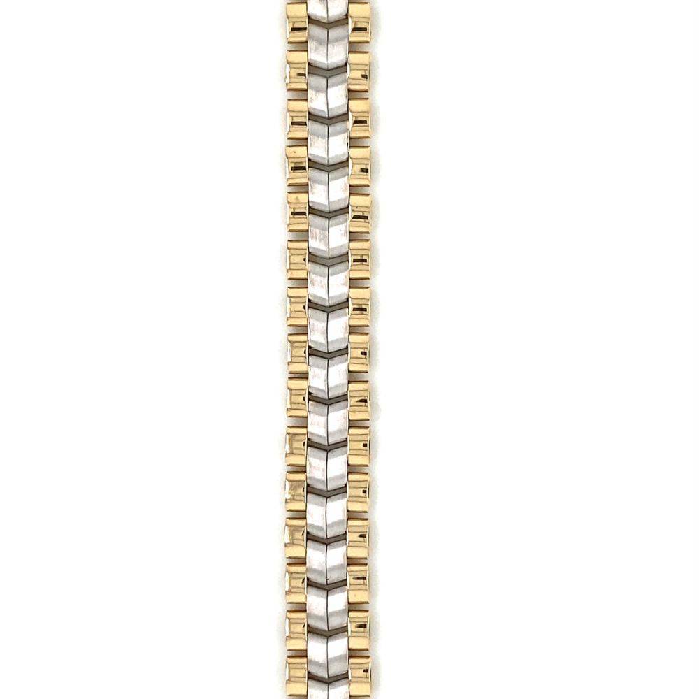9ct yellow and white gold flat bracelet. White central herringbon arrowhead links with yellow gold plain links either side.