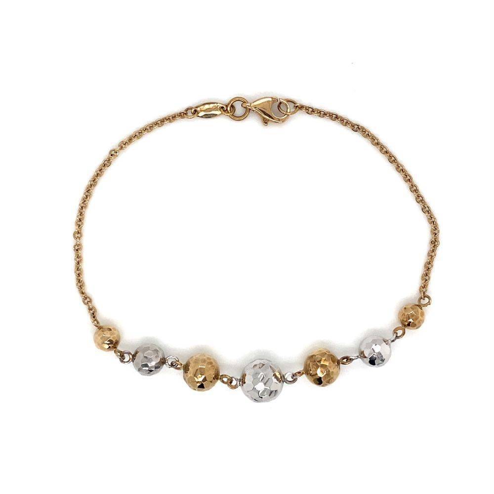 9ct yellow and white gold graduated textured ball bracelet on a 9ct yellow gold trace link bracelet.