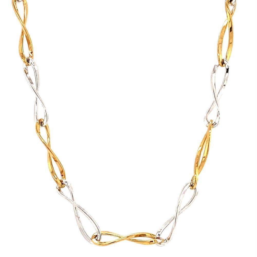 9ct yellow and white gold alternate infinity link necklace. Length 17″”.