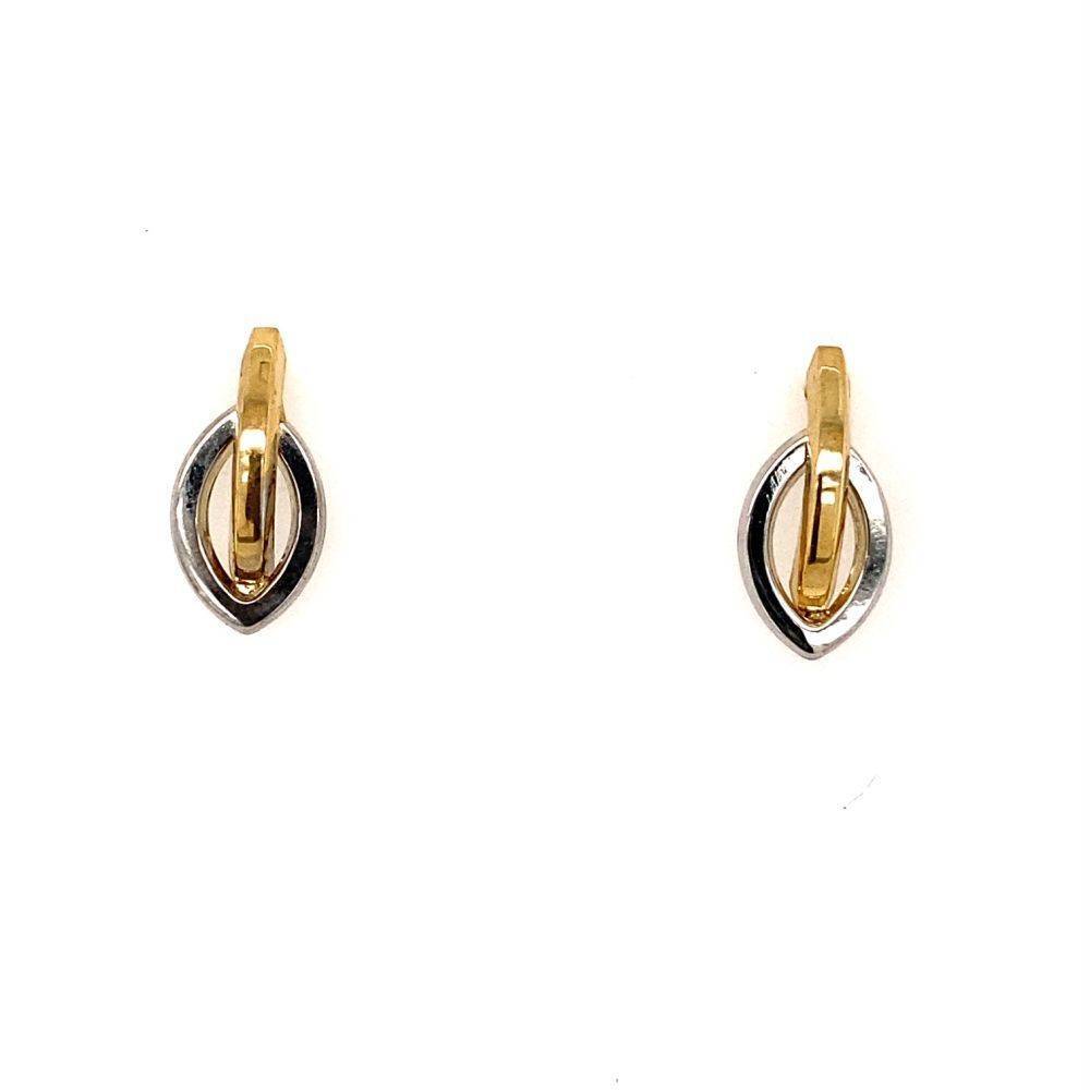 9ct yellow and white gold stud earrings with an open white gold marquise shape and a white gold bar.