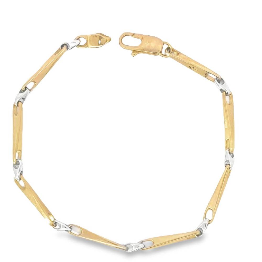 9ct yellow and white gold two tone needle link bracelet.