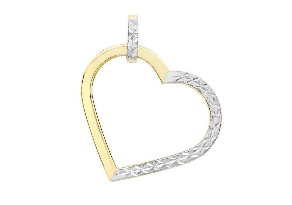 9ct yellow and white gold half diamond cut open heart pendant. DOES NOT INCLUDE CHAIN. Chains are sold separately.