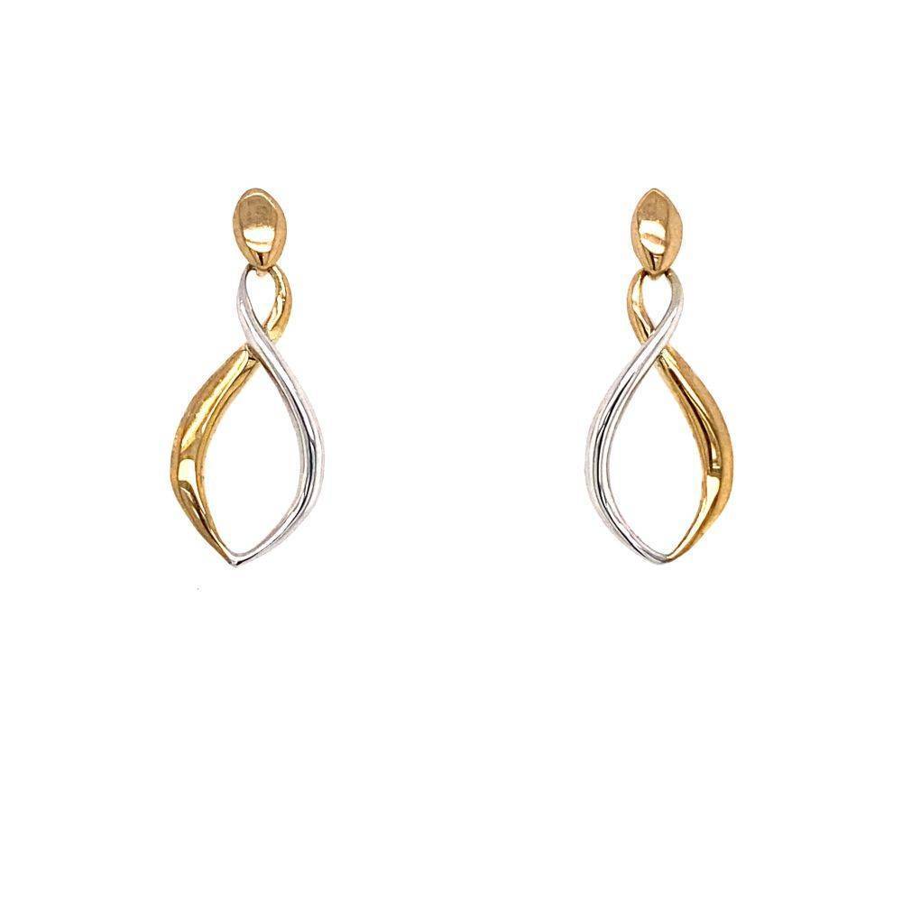 9ct Yellow & White Gold Open Twist Drop Earrings