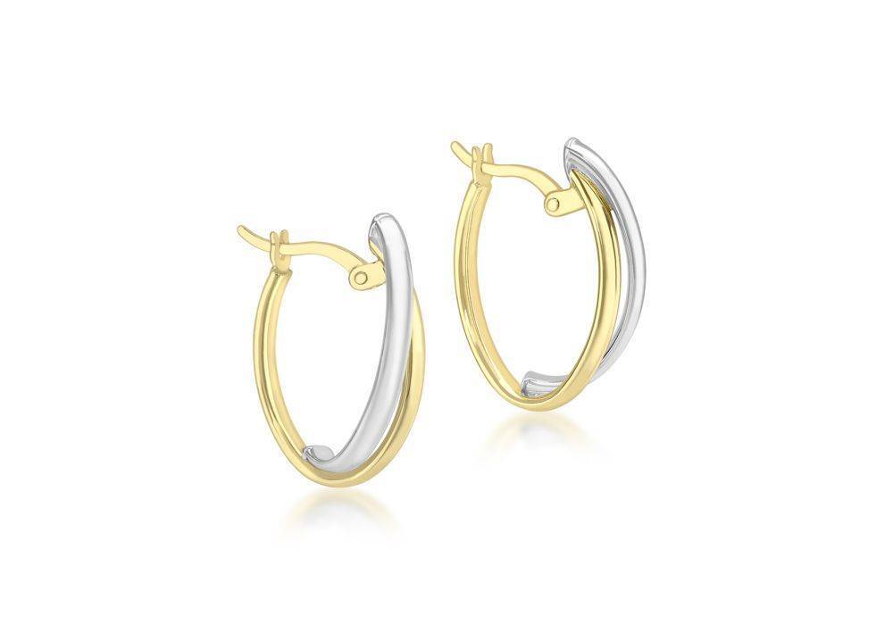 9ct Yellow & White Gold Two Row Oval Hoop Earrings