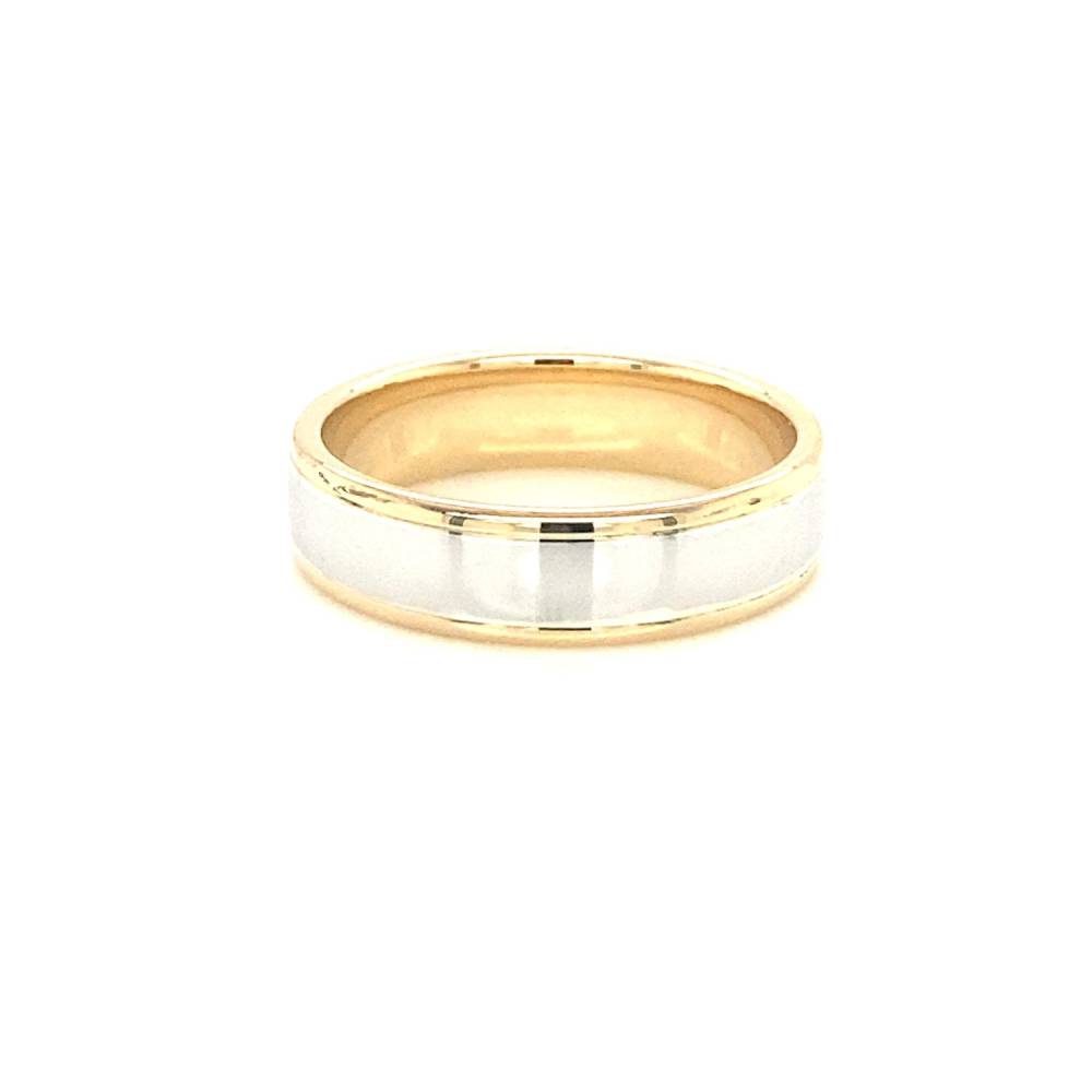 9ct yellow and white gold 6mm polished two tone wedding ring. 6mm wide. This ring is available in different widths and different precious metals, please enquire for more details and prices.