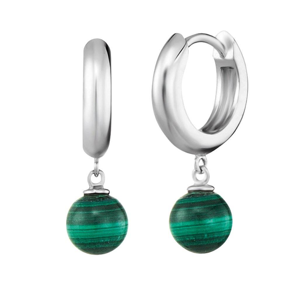 Angel Whisperer sterling silver hoop earrings with a powerful stone charm, malachite. According to historical tradition, stones are said to have certain powers and functions. Malachite can have a positive effect on the body. It can support the psyche and help it to be balanced and full of life. Malachite apparently boosts the cardiovascular system and oxygen supply. It can also positively influence the psyche and help to be balanced and full of life.