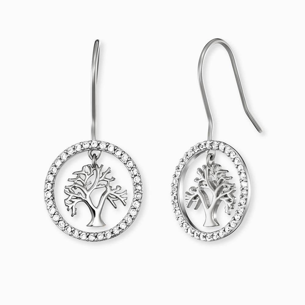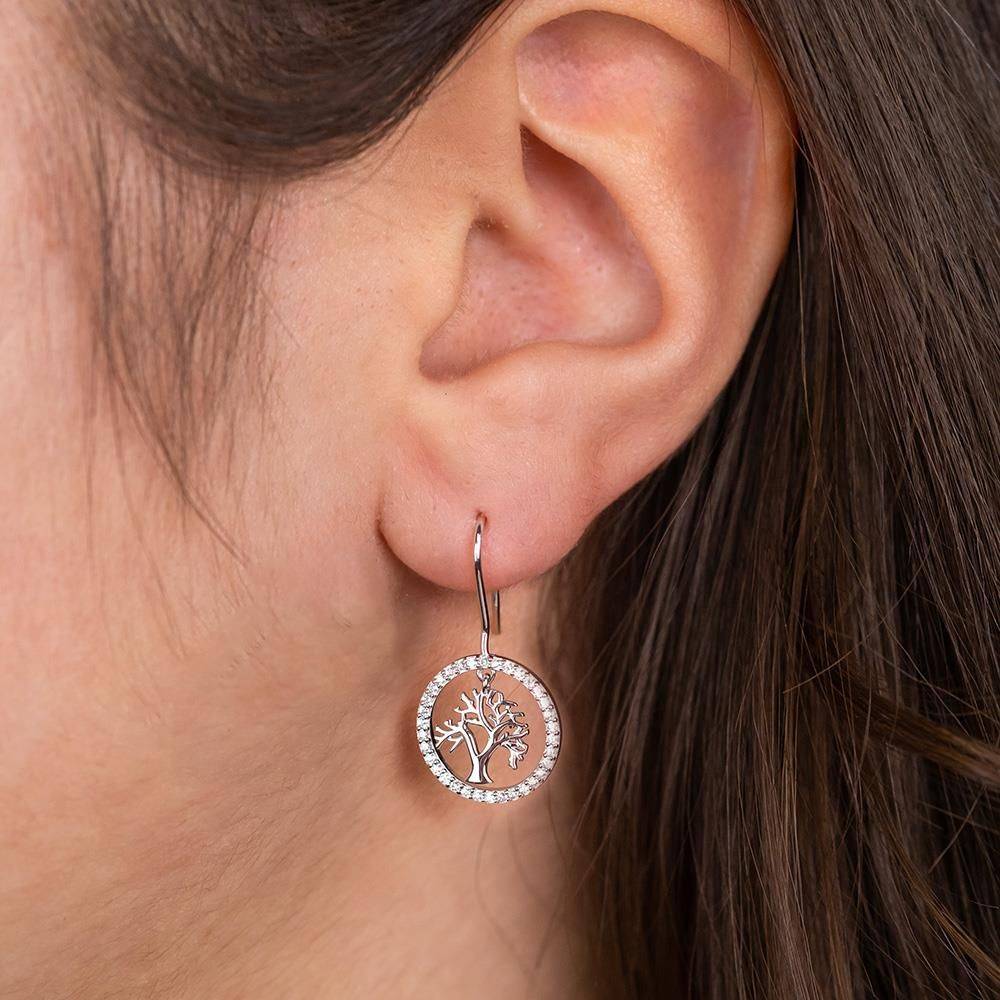 Earrings Tree of Life with 68 white Cubic Zirconia, Made from 925 sterling silver rhodium plated.