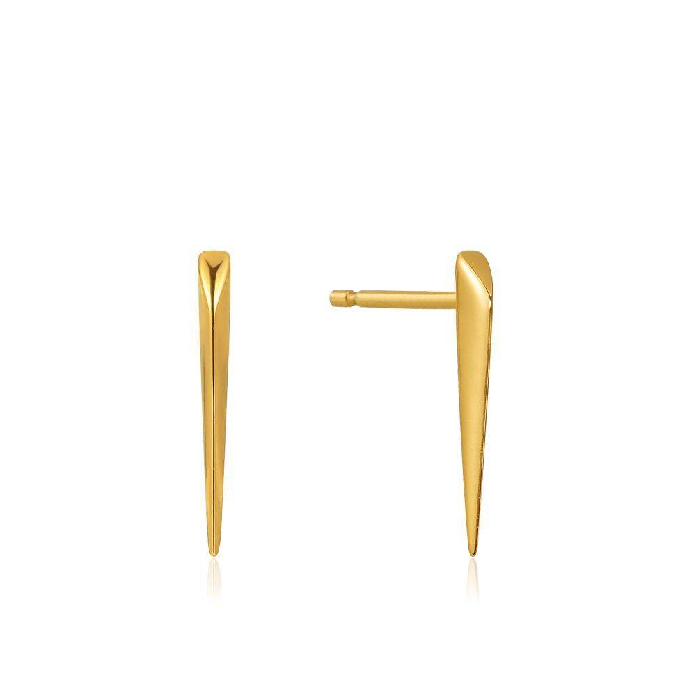 Ania Haie gold straight spike stud earrings. Minimal style. Crafted in sterling silver with 14ct gold plating.